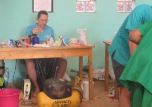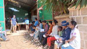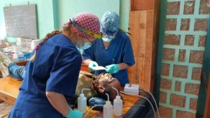 La dernière semaine du mois a été très chargée, avec l’accueil d’une équipe de dentistes de France, du 23 au 26 février, en collaboration avec l’association l’Oued dentaire. A notre demande, ils sont venus soigner gratuitement les personnes qui en avaient besoin : villageois, élèves, parents. La demande était telle qu’ils n’ont pu soigner tous ceux qui se sont présentés, et notamment pas tous nos élèves et membres du staff. Ici, pas de fauteuils de dentiste, mais de simples tables en bois, installées dans le grand atelier. Au total, les dentistes ont soigné 346 patients, ont extrait un grand nombre de dents, et réalisé 18 prothèses sur place, en plus de soins conservateurs. Ils ont également animé une séance de sensibilisation à l’hygiène, et distribué brosses à dents et dentifrices à nos jeunes élèves. De leur côté, les jeunes dentistes ont tous reçu un chapeau malgache typique, en raphia !