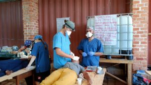 La dernière semaine du mois a été très chargée, avec l’accueil d’une équipe de dentistes de France, du 23 au 26 février, en collaboration avec l’association l’Oued dentaire. A notre demande, ils sont venus soigner gratuitement les personnes qui en avaient besoin : villageois, élèves, parents. La demande était telle qu’ils n’ont pu soigner tous ceux qui se sont présentés, et notamment pas tous nos élèves et membres du staff. Ici, pas de fauteuils de dentiste, mais de simples tables en bois, installées dans le grand atelier. Au total, les dentistes ont soigné 346 patients, ont extrait un grand nombre de dents, et réalisé 18 prothèses sur place, en plus de soins conservateurs. Ils ont également animé une séance de sensibilisation à l’hygiène, et distribué brosses à dents et dentifrices à nos jeunes élèves. De leur côté, les jeunes dentistes ont tous reçu un chapeau malgache typique, en raphia !